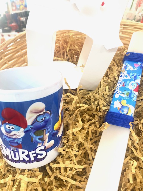 Πασχαλινή λαμπάδα Στρουμφακια με κουπα και blister κουτι
